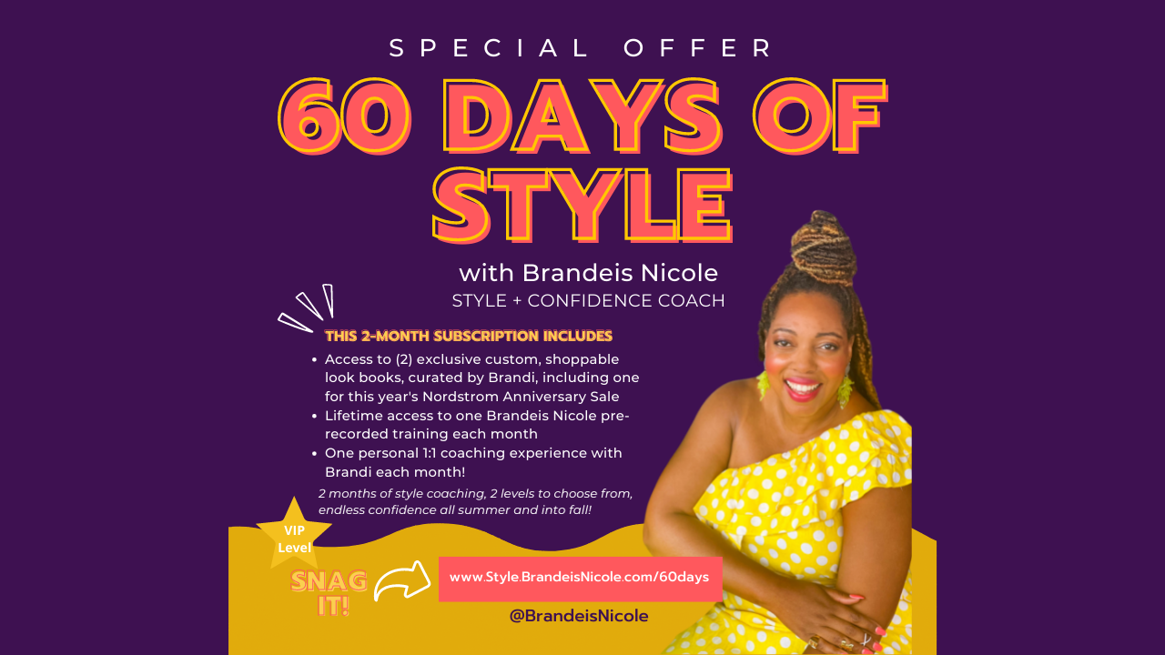 3. Two 1:1 coaching opportunities (one each month) during Style Office Hours. Share your style challenge in advance and receive a personalized 1:1 response from Brandi during office hours, held each month.